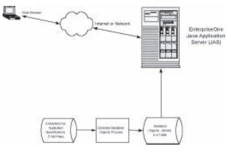 The Java Application Server (JAS) is where a combination of tools and technology is installed including EnterpriseOne JAS Software, WebSphere Application Server and IBM HTTP Server. Conceptually, it works like this: A web page (HTML and JAVA applets) is displayed to the user based on the serialized objects.